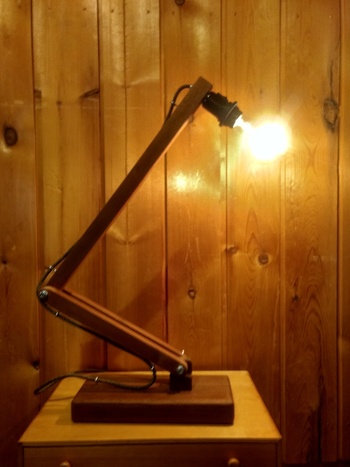 This was a bit of an experiment using some offcut pieces of sapele wood that I had, when I wanted an extra lamp for my office. The wing nuts tighten and loosen for moving and holding the position, I didn't want to get into having springs to automatically balance and …