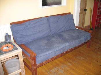 I needed a new sofa at home, so thought I'd build one, though I wasn't really ready for going down the route of needing to learn a lot about upholstery . So I made a compromise and build a wooden frame for some cushions to go on.